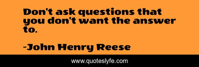 This page presents the quote "Don't ask questions that you don't want the answer to.". Author of this quote is John Henry Reese. This quote is about questions-and-answers, questions-in-life, questions,.