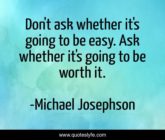 This page presents the quote "Don't ask whether it's going to be easy. Ask whether it's going to be worth it.". Author of this quote is Michael Josephson. This quote is about ask, worth, easy,.