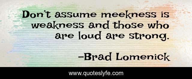 This page presents the quote "Don’t assume meekness is weakness and those who are loud are strong.". Author of this quote is Brad Lomenick. .
