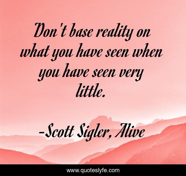 "Scott Sigler, Alive Quotes." Quoteslyfe.com, 2025. Sun. 07 Dec. 2025. <https://www.quoteslyfe.com/quote/Don-t-base-reality-on-what-you-94016>.