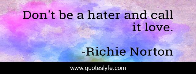 This page presents the quote "Don't be a hater and call it love.". Author of this quote is Richie Norton. This quote is about confidence, self-mastery, mindful, marketing, work, success, self-help, entrepreneur, innovation,.