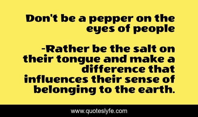 "Rather be the salt on their tongue and make a difference that influences their sense of belonging to the earth. Quotes." Quoteslyfe.com, 2025. Fri. 05 Dec. 2025. <https://www.quoteslyfe.com/quote/Don-t-be-a-pepper-on-the-192427>.