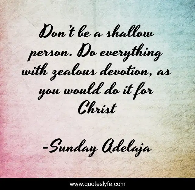 This page presents the quote "Don’t be a shallow person. Do everything with zealous devotion, as you would do it for Christ". Author of this quote is Sunday Adelaja. This quote is about zeal, christ,.