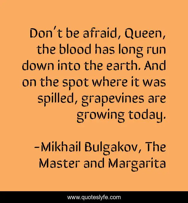 "Mikhail Bulgakov, The Master and Margarita Quotes." Quoteslyfe.com, 2025. Sat. 06 Dec. 2025. <https://www.quoteslyfe.com/quote/Don-t-be-afraid-Queen-the-blood-247763>.