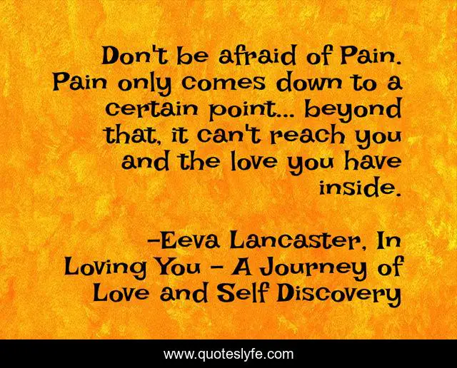 "Eeva Lancaster, In Loving You - A Journey of Love and Self Discovery Quotes." Quoteslyfe.com, 2025. Sat. 06 Dec. 2025. <https://www.quoteslyfe.com/quote/Don-t-be-afraid-of-Pain-Pain-182271>.