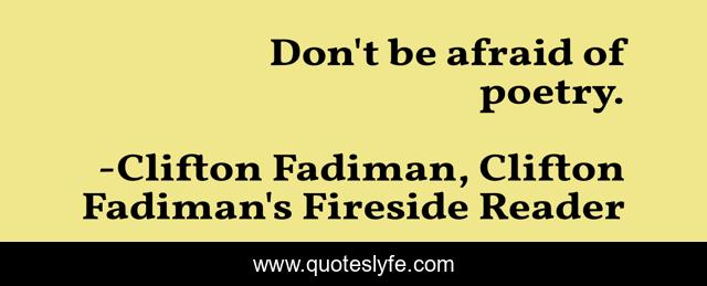 "Clifton Fadiman, Clifton Fadiman's Fireside Reader Quotes." Quoteslyfe.com, 2025. Fri. 05 Dec. 2025. <https://www.quoteslyfe.com/quote/Don-t-be-afraid-of-poetry-25156>.