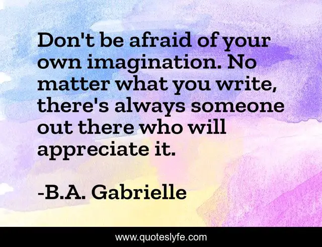 This page presents the quote "Don't be afraid of your own imagination. No matter what you write, there's always someone out there who will appreciate it.". Author of this quote is B.A. Gabrielle. .