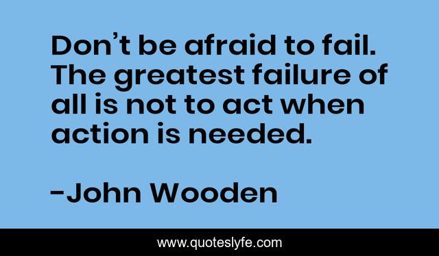 This page presents the quote "Don’t be afraid to fail. The greatest failure of all is not to act when action is needed.". Author of this quote is John Wooden. .