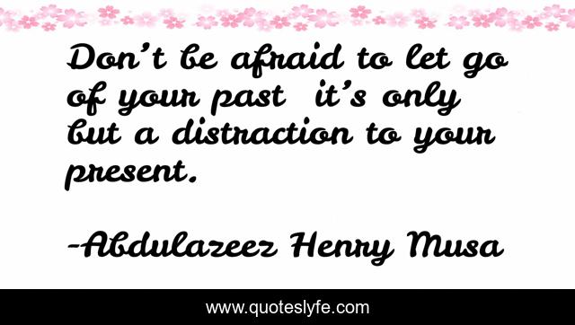 This page presents the quote "Don’t be afraid to let go of your past……it’s only but a distraction to your present.". Author of this quote is Abdulazeez Henry Musa. .