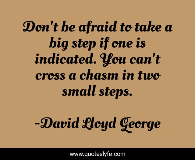 This page presents the quote "Don't be afraid to take a big step if one is indicated. You can't cross a chasm in two small steps.". Author of this quote is David Lloyd George. .