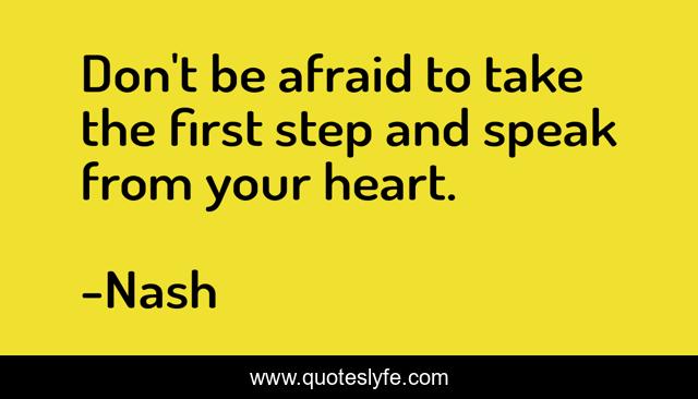 This page presents the quote "Don't be afraid to take the first step and speak from your heart.". Author of this quote is Nash. This quote is about life, love, success, friendship, first-love, revenge, friends, affection, inspiration,.