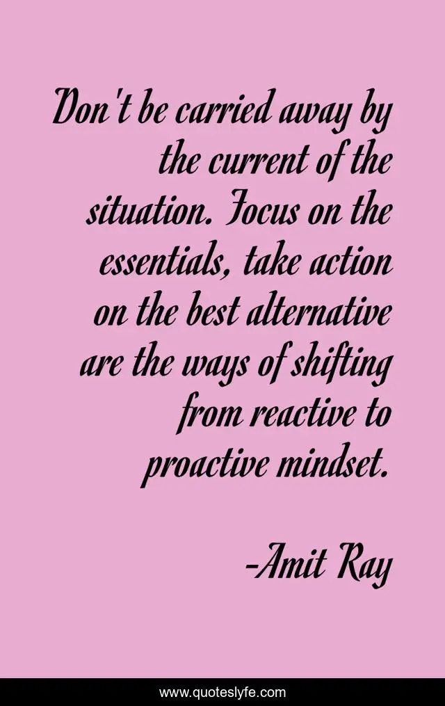 Don't be carried away by the current of the situation. Focus on the essentials, take action on the best alternative are the ways of shifting from reactive to proactive mindset.
