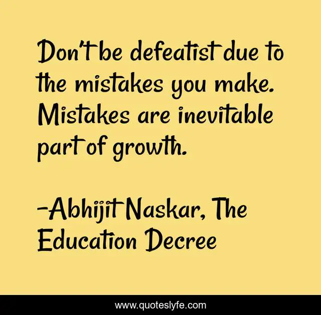 Don’t be defeatist due to the mistakes you make. Mistakes are inevitable part of growth.