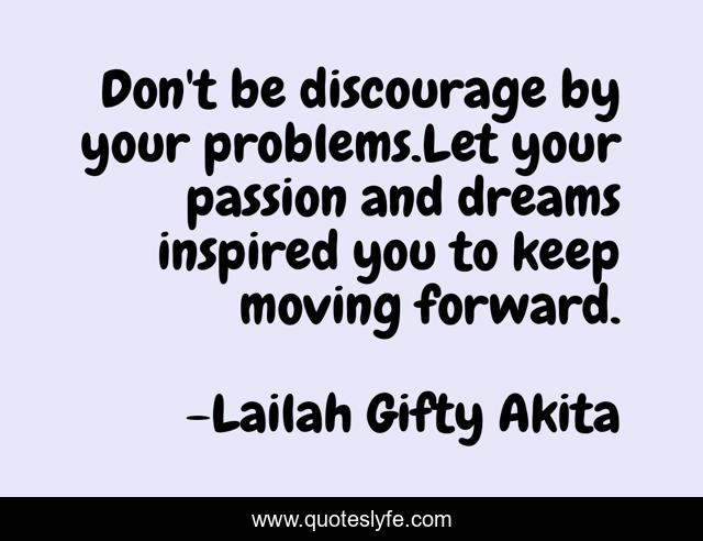 This page presents the quote "Don't be discourage by your problems.Let your passion and dreams inspired you to keep moving forward.". Author of this quote is Lailah Gifty Akita. This quote is about passion-for-life, determination,.