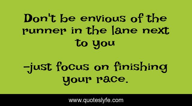 This page presents the quote "Don't be envious of the runner in the lane next to you". Author of this quote is just focus on finishing your race.. .