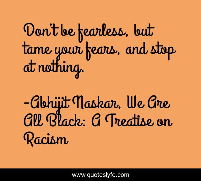 "Abhijit Naskar, We Are All Black: A Treatise on Racism Quotes." Quoteslyfe.com, 2025. Fri. 05 Dec. 2025. <https://www.quoteslyfe.com/quote/Don-t-be-fearless-but-tame-your-32805>.