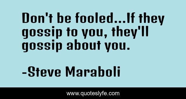 This page presents the quote "Don't be fooled...If they gossip to you, they'll gossip about you.". Author of this quote is Steve Maraboli. This quote is about relationships, fooled, gossip,.