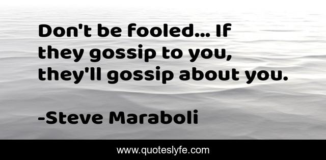 This page presents the quote "Don't be fooled... If they gossip to you, they'll gossip about you.". Author of this quote is Steve Maraboli. This quote is about relationships, gossip,.