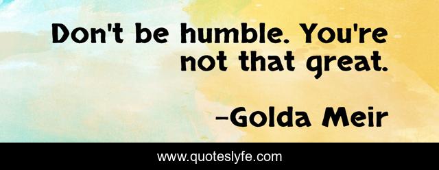 "Golda Meir Quotes." Quoteslyfe.com, 2025. Sat. 06 Dec. 2025. <https://www.quoteslyfe.com/quote/Don-t-be-humble-You-re-not-261008>.