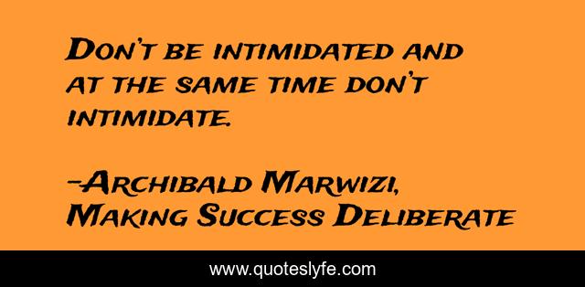 "Archibald Marwizi, Making Success Deliberate Quotes." Quoteslyfe.com, 2025. Fri. 05 Dec. 2025. <https://www.quoteslyfe.com/quote/Don-t-be-intimidated-and-at-the-109371>.