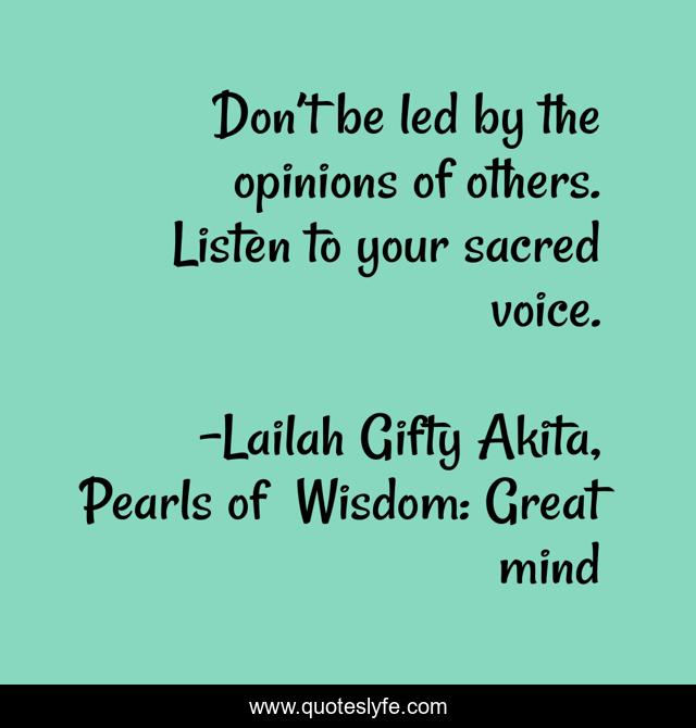 "Lailah Gifty Akita, Pearls of Wisdom: Great mind Quotes." Quoteslyfe.com, 2025. Mon. 08 Dec. 2025. <https://www.quoteslyfe.com/quote/Don-t-be-led-by-the-opinions-48241>.