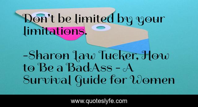 "Sharon Law Tucker, How to Be a BadAss - A Survival Guide for Women Quotes." Quoteslyfe.com, 2025. Mon. 08 Dec. 2025. <https://www.quoteslyfe.com/quote/Don-t-be-limited-by-your-limitations-106530>.