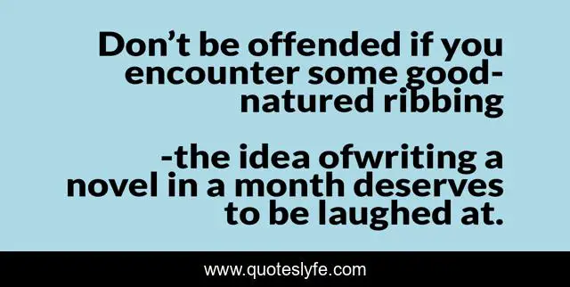 "the idea ofwriting a novel in a month deserves to be laughed at. Quotes." Quoteslyfe.com, 2025. Sat. 06 Dec. 2025. <https://www.quoteslyfe.com/quote/Don-t-be-offended-if-you-encounter-187231>.