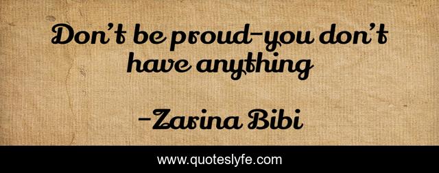 This page presents the quote "Don’t be proud-you don’t have anything". Author of this quote is Zarina Bibi. .