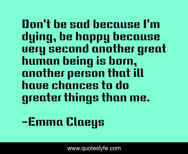 Don't be sad because I'm dying, be happy because very second another great human being is born, another person that ill have chances to do greater things than me.