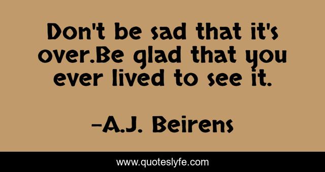 This page presents the quote "Don't be sad that it's over.Be glad that you ever lived to see it.". Author of this quote is A.J. Beirens. This quote is about living, life, philosophy, sadness, gladness,.