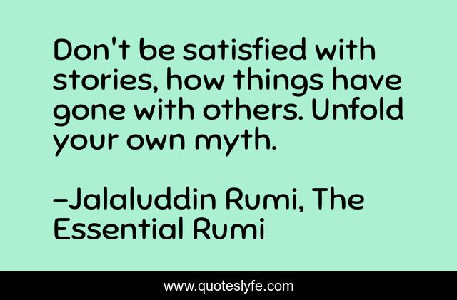 This page presents the quote "Don't be satisfied with stories, how things have gone with others. Unfold your own myth.". Author of this quote is Jalaluddin Rumi, The Essential Rumi. This quote is about empowerment, self-confidence, inspirational-stories, creativity, self-realization, courage, independence,.