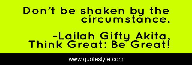 "Lailah Gifty Akita, Think Great: Be Great! Quotes." Quoteslyfe.com, 2025. Mon. 08 Dec. 2025. <https://www.quoteslyfe.com/quote/Don-t-be-shaken-by-the-circumstance-95026>.