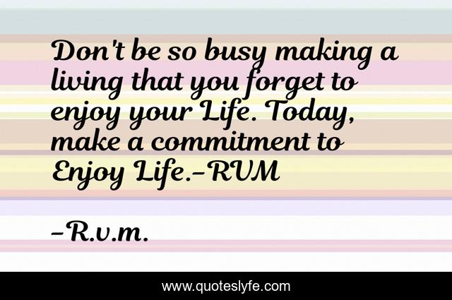 This page presents the quote "Don't be so busy making a living that you forget to enjoy your Life. Today, make a commitment to Enjoy Life.-RVM". Author of this quote is R.v.m.. This quote is about motivational-inspirational, inspiration,.