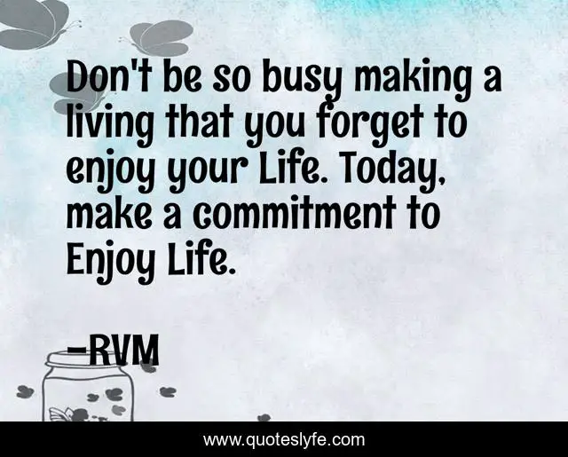 This page presents the quote "Don't be so busy making a living that you forget to enjoy your Life. Today, make a commitment to Enjoy Life.". Author of this quote is RVM. This quote is about motivation, inspiration,.