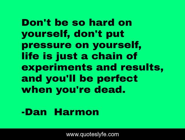 This page presents the quote "Don't be so hard on yourself, don't put pressure on yourself, life is just a chain of experiments and results, and you'll be perfect when you're dead.". Author of this quote is Dan Harmon. This quote is about perfect, life, death, community, dead, perfection,.