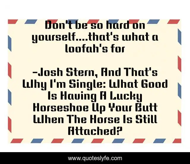 "Josh Stern, And That's Why I'm Single: What Good Is Having A Lucky Horseshoe Up Your Butt When The Horse Is Still Attached? Quotes." Quoteslyfe.com, 2025. Sun. 07 Dec. 2025. <https://www.quoteslyfe.com/quote/Don-t-be-so-hard-on-yourself-250194>.