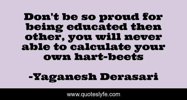 This page presents the quote "Don't be so proud for being educated then other, you will never able to calculate your own hart-beets". Author of this quote is Yaganesh Derasari. This quote is about human-nature, education, phylosophy,.