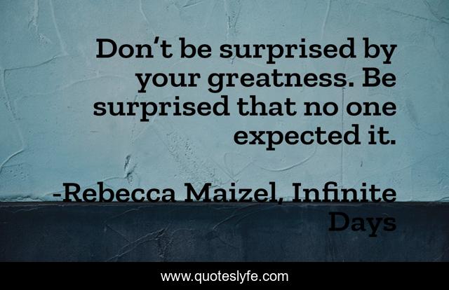 "Rebecca Maizel, Infinite Days Quotes." Quoteslyfe.com, 2025. Sat. 06 Dec. 2025. <https://www.quoteslyfe.com/quote/Don-t-be-surprised-by-your-greatness-141482>.