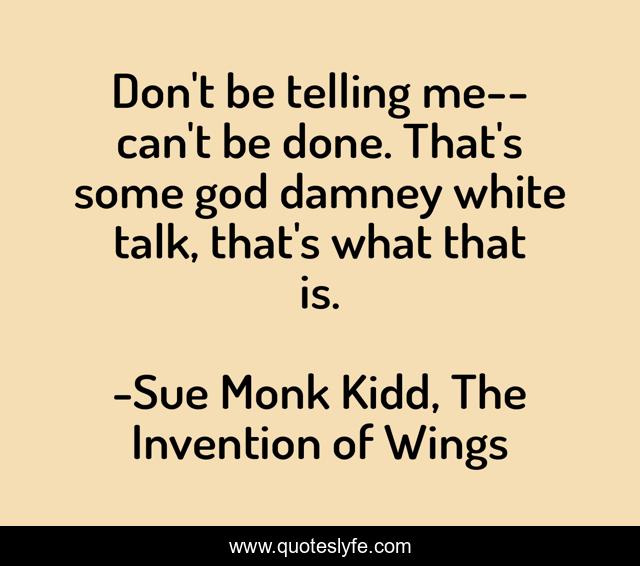 "Sue Monk Kidd, The Invention of Wings Quotes." Quoteslyfe.com, 2025. Sun. 07 Dec. 2025. <https://www.quoteslyfe.com/quote/Don-t-be-telling-me-can-t-188216>.