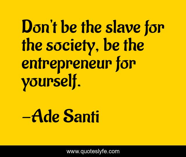 This page presents the quote "Don't be the slave for the society, be the entrepreneur for yourself.". Author of this quote is Ade Santi. This quote is about self-realization, inspirational, enthusiasm,.