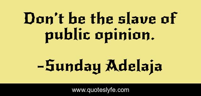 This page presents the quote "Don’t be the slave of public opinion.". Author of this quote is Sunday Adelaja. This quote is about public-opinion, slavery,.