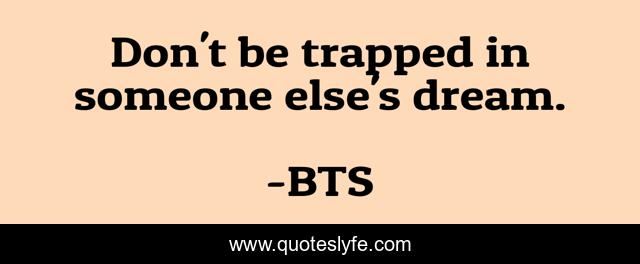 This page presents the quote "Don't be trapped in someone else's dream.". Author of this quote is BTS. .
