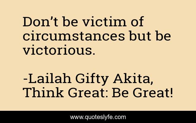 "Lailah Gifty Akita, Think Great: Be Great! Quotes." Quoteslyfe.com, 2025. Mon. 08 Dec. 2025. <https://www.quoteslyfe.com/quote/Don-t-be-victim-of-circumstances-but-94940>.