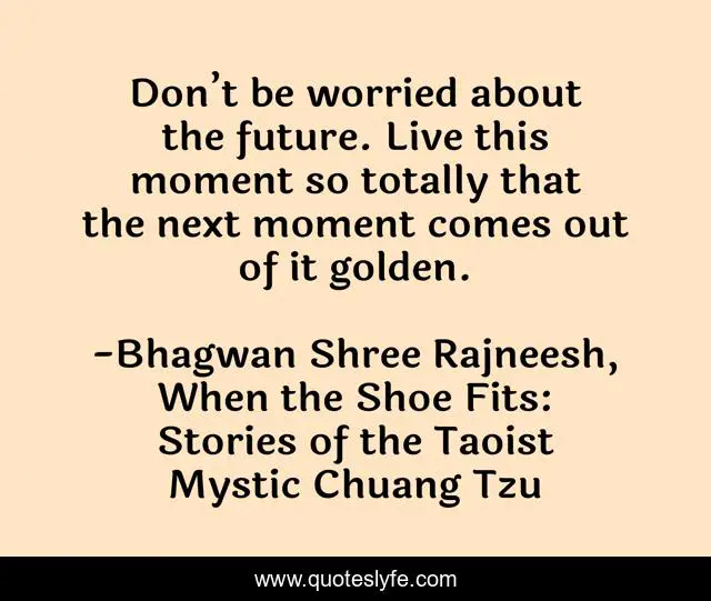 "Bhagwan Shree Rajneesh, When the Shoe Fits: Stories of the Taoist Mystic Chuang Tzu Quotes." Quoteslyfe.com, 2025. Mon. 08 Dec. 2025. <https://www.quoteslyfe.com/quote/Don-t-be-worried-about-the-future-239442>.