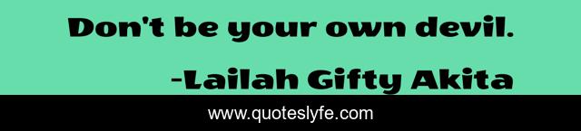This page presents the quote "Don't be your own devil.". Author of this quote is Lailah Gifty Akita. This quote is about motivation, devil, distress,.