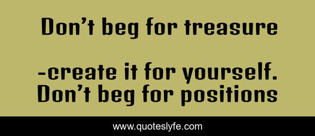 This page presents the quote "Don’t beg for treasure". Author of this quote is create it for yourself. Don’t beg for positions. .