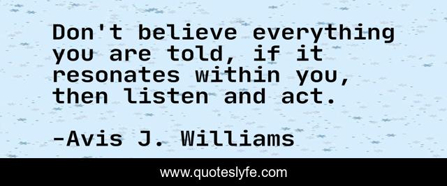 "Avis J. Williams Quotes." Quoteslyfe.com, 2025. Mon. 08 Dec. 2025. <https://www.quoteslyfe.com/quote/Don-t-believe-everything-you-are-told-42574>.