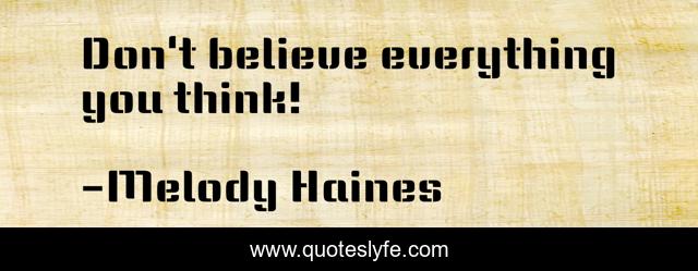 "Melody Haines Quotes." Quoteslyfe.com, 2025. Mon. 08 Dec. 2025. <https://www.quoteslyfe.com/quote/Don-t-believe-everything-you-think-195685>.