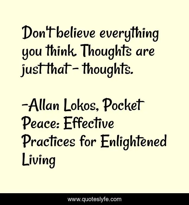 "Allan Lokos, Pocket Peace: Effective Practices for Enlightened Living Quotes." Quoteslyfe.com, 2025. Mon. 08 Dec. 2025. <https://www.quoteslyfe.com/quote/Don-t-believe-everything-you-think-Thoughts-12700>.