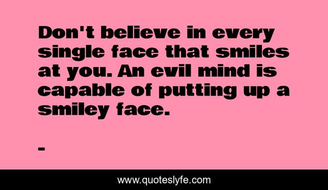 Don't believe in every single face that smiles at you. An evil mind is capable of putting up a smiley face.